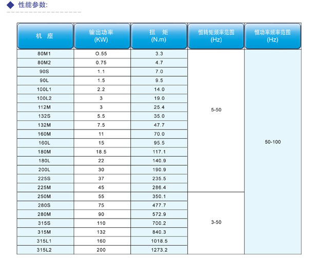 該系列電機可由變頻器供電。單獨供電的風機可保證電機在整個頻域內正常運行。